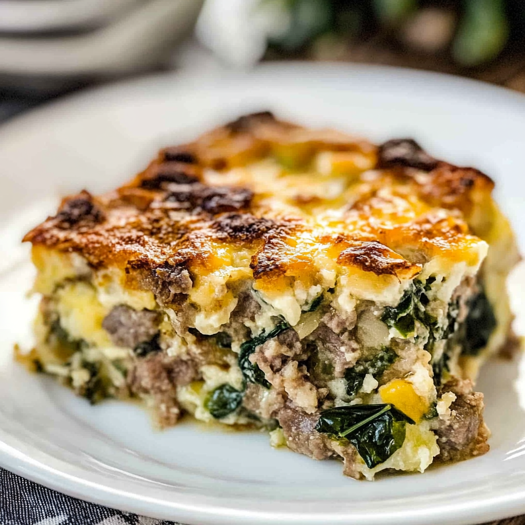 Irresistible Sausage & Spinach Holiday Breakfast Strata