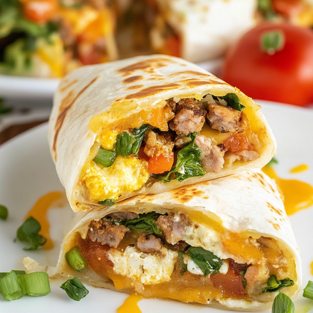 Irresistible Sausage-Spinach Christmas Breakfast Burritos