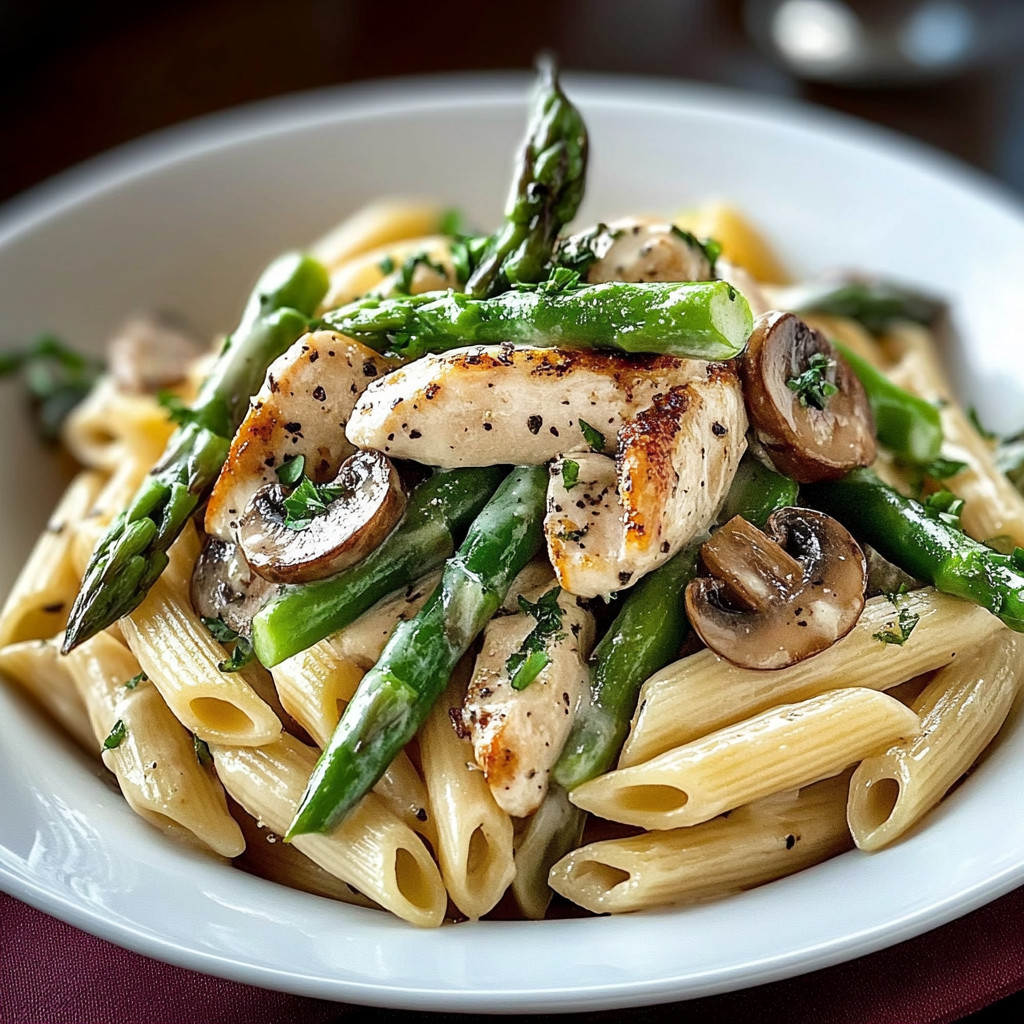 Delicious Mushroom Asparagus Chicken Penne Recipe