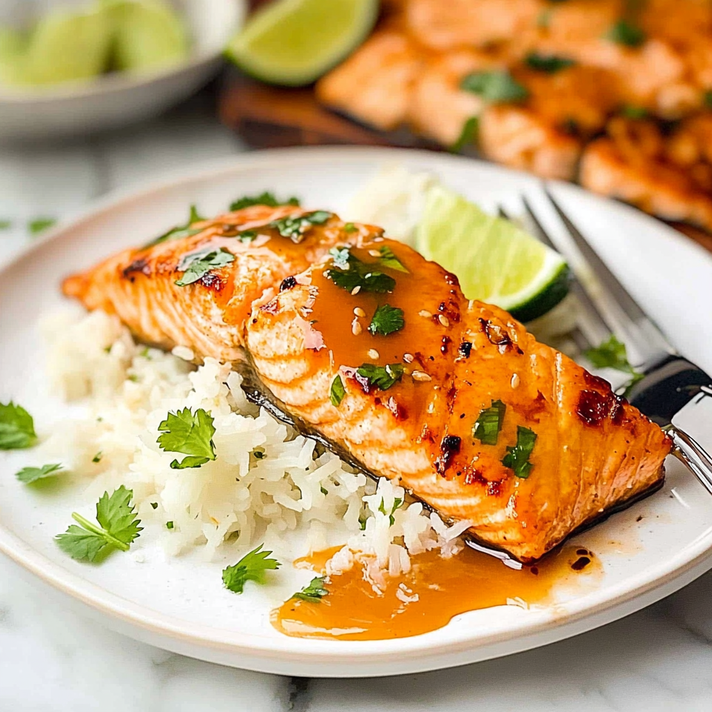 Irresistible Honey Sriracha Glazed Salmon with Coconut Rice