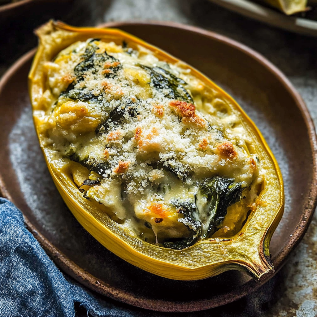Irresistible Spinach and Artichoke Stuffed Spaghetti Squash