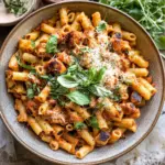 Keywords: For added nutrition, consider mixing in spinach or mushrooms. Swap penne for whole wheat or gluten-free options for dietary preferences. Leftovers can be stored in an airtight container in the fridge for up to three days; reheat gently on low heat.