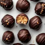 Dipping in Chocolate: Melt 1 cup of dark chocolate chips in a microwave-safe bowl in 30-second intervals until fully melted and smooth. Dip each peanut butter ball into the melted chocolate using a fork or toothpick—let excess chocolate drip off before placing them on parchment paper.