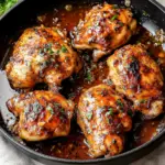 Now it’s glazing time! Pour the reserved marinade over the seared chicken in the skillet. Bring it to a gentle simmer while you enjoy that irresistible aroma filling your kitchen—it’s basically a hug in smell form! Once simmering, transfer the skillet into your preheated oven and bake for another 20-25 minutes until chicken reaches an internal temperature of 165°F (75°C).