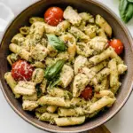 Start by cooking the pasta al dente while grilling or sautéing the chicken. Once done, mix in the pesto to create a delightful harmony.