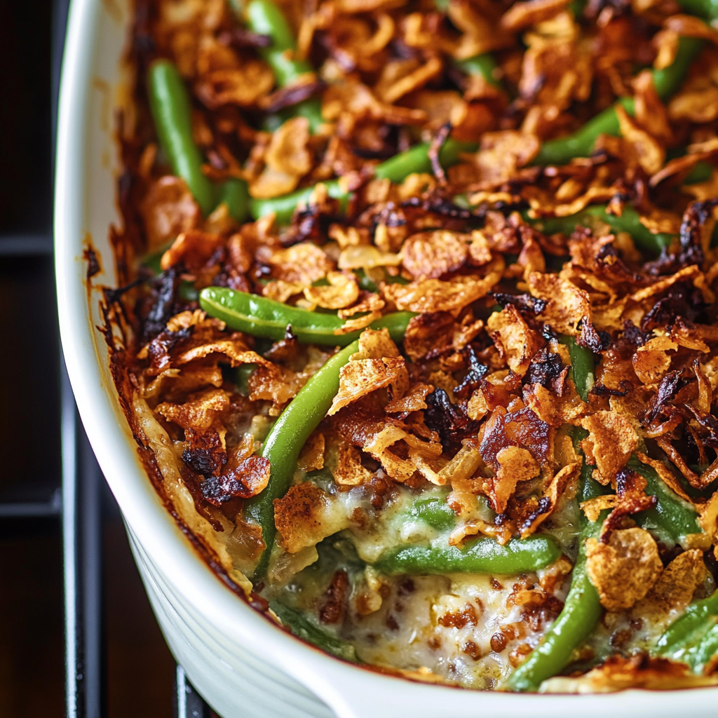 Growing up in the South, I remember my grandmother preparing her famous green bean casserole every holiday season. The moment it came out of the oven, we would all rush into the dining room, eager to savor its rich flavors. Whether it’s Thanksgiving or a cozy family dinner, this dish brings everyone together and adds warmth to any gathering. The blend of textures and tastes—crunchy on top and smooth beneath—makes each bite a celebration of home-cooked goodness.