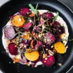 Indulge in the vibrant flavors of roasted beet salad, where earthy beets meet creamy feta and crunchy walnuts, all drizzled with a zesty balsamic dressing. This visually stunning dish is perfect for impressing guests or enjoying as a nutritious meal at home. Easy to make, it’s a guaranteed crowd-pleaser that balances sweetness and tanginess in every bite.