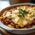 Combine Everything in a Baking Dish: In a large casserole dish, layer your cooked pasta or rice at the bottom. Pour the meat mixture over it evenly this is where magic happens