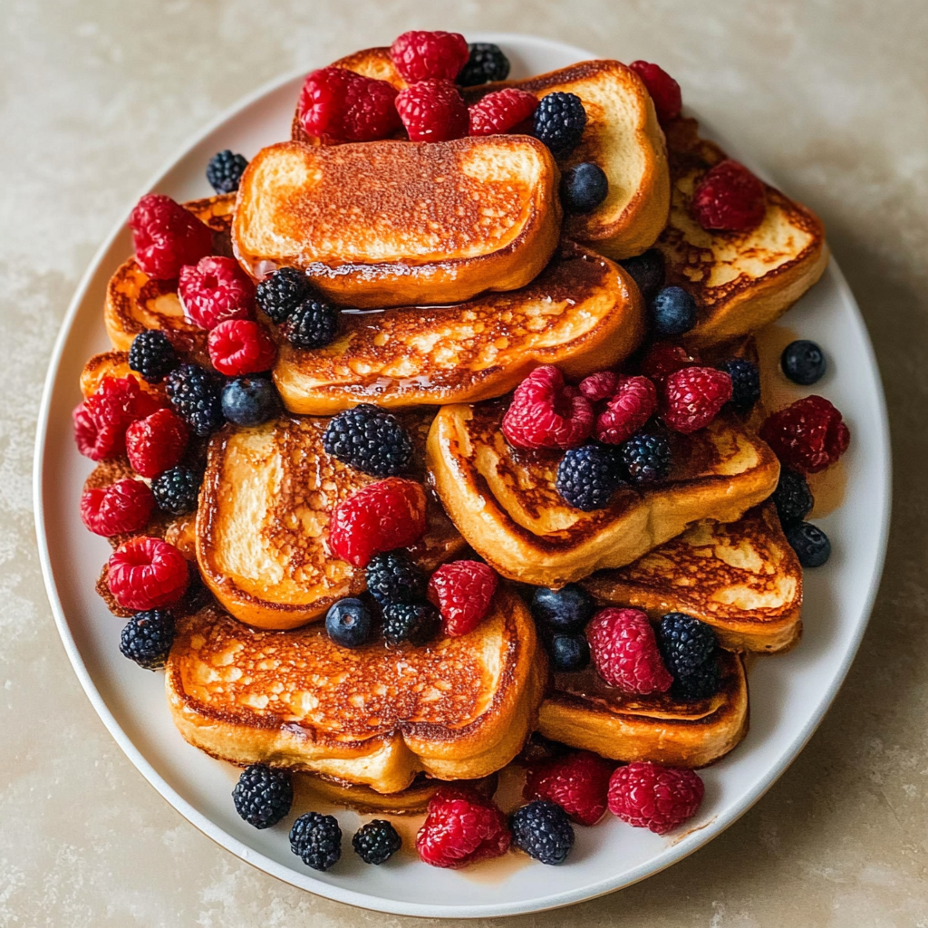 Keywords: Use stale brioche for better absorption without sogginess. Enhance flavors by adding nutmeg or topping with whipped cream and berries.