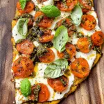 Every so often, a dish comes along that makes you feel like a culinary rock star. The Caprese Pesto Flatbread is one of those dishes. Imagine the crispy flatbread base, slathered with aromatic pesto, topped with juicy tomatoes and creamy mozzarella. It’s an explosion of flavors and textures that will awaken your taste buds and have you floating on a cloud of deliciousness.
