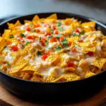 Enjoy digging into this culinary delight! Each scoop reveals layers of cheesy goodness mingled with zesty chicken and crunchy Doritos—a match made in comfort food heaven!