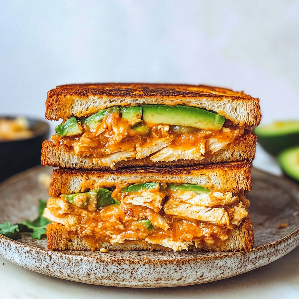 Once golden brown and melty perfection is achieved, remove from heat. Slice your Chicken Avocado Melt Sandwich diagonally—because everything tastes better when cut at an angle—and serve immediately with your favorite side salad or chips.