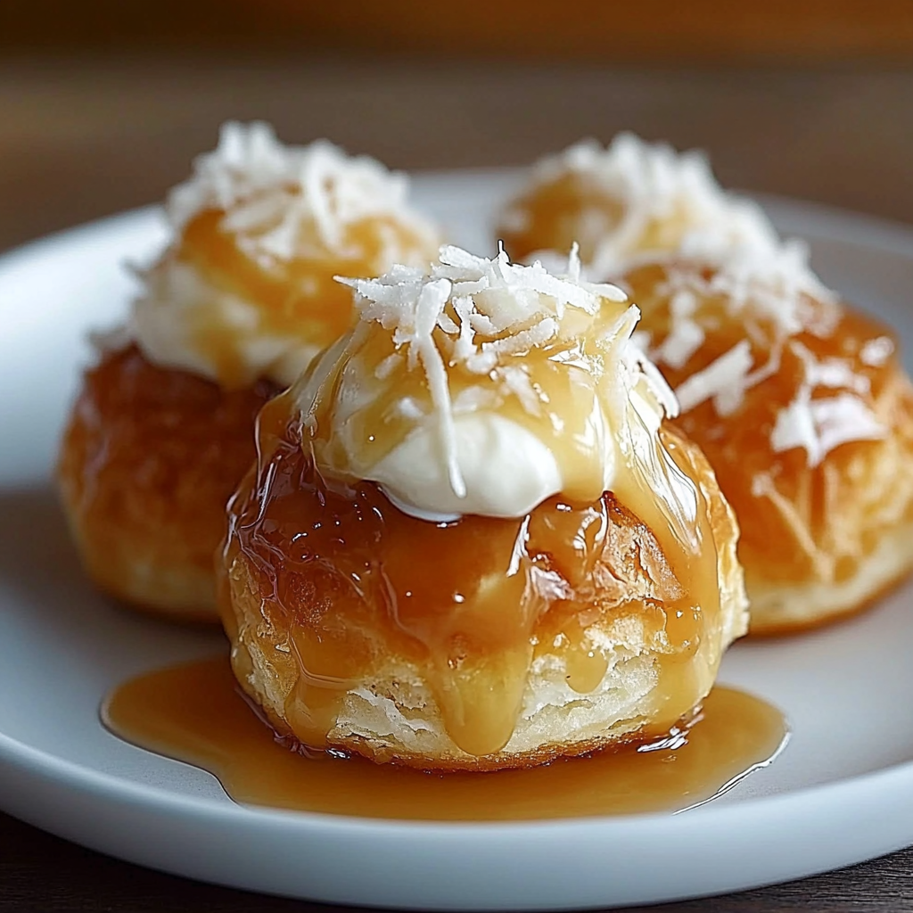 - Coconut Caramel Cream Puffs are a delightful treat that brings together the richness of coconut and the sweetness of caramel