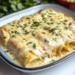 Creamy White Chicken Enchiladas are a delicious Mexican dish made with flour tortillas filled with shredded chicken, cream cheese, and spices. They are typically topped with a creamy white sauce, often made from sour cream or a creamy cheese blend. This dish is loved for its rich flavor and comforting texture, making it perfect for family dinners or gatherings.