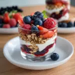 Yes! You can prepare the Fruit & Yogurt Parfait ahead of time for convenience. Layer the yogurt, fruits, and granola in mason jars or airtight containers the night before serving. Just keep the granola separate until you’re ready to eat to maintain its crunchiness. Store them in the refrigerator for up to 24 hours. This makes it an excellent grab-and-go breakfast or snack option for busy mornings.
