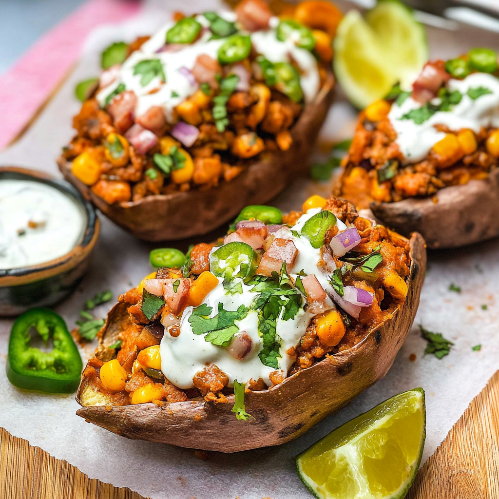 Mexican stuffed sweet potatoes are a vibrant and flavorful dish that combines the natural sweetness of baked sweet potatoes with zesty black beans, corn, and spices. Topped with creamy avocado and fresh cilantro, these stuffed potatoes create a delightful culinary experience perfect for cozy dinners or festive gatherings. Easy to prepare and visually appealing, this nutritious meal is sure to please everyone at the table.