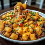 Dive into the ultimate comfort food with One-Pan Cheeseburger Tater Tot Pasta, a dish that combines the rich flavors of cheeseburgers with the satisfying crunch of tater tots. This easy-to-make recipe is perfect for busy weeknights, offering hearty portions and a nostalgic taste of childhood. A delicious blend of pasta, ground beef, and gooey cheese topped with crispy tater tots makes this meal a family favorite that will have everyone coming back for seconds!
