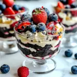When you think of a dessert that’s as delightful to look at as it is to eat, the Oreo Trifle with Blueberries and Strawberries springs to mind. Picture this: layers of creamy vanilla pudding, crunchy Oreo crumbles, and vibrant blueberries and strawberries all piled high in a glass so tall it could rival your favorite skyscraper. Each spoonful bursts with sweet flavors and contrasting textures—it’s like a party in your mouth! For more inspiration, check out this delicious dessert ideas recipe.
