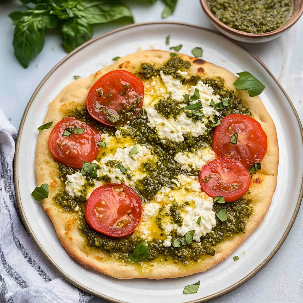 Start by preheating your oven to 475°F (245°C). Roll out the flatbread, spread pesto, add cheese, and toppings before baking for 10-12 minutes.