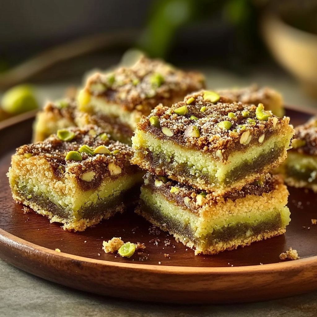 Keywords: For added flavor, consider sprinkling sea salt on top before baking. You can substitute pistachios with almonds or walnuts for a different twist. Store leftover bars in an airtight container at room temperature for up to five days.