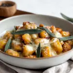 Yes, you can prepare Pumpkin Gnocchi Bake with Sage ahead of time. Assemble the dish without baking it, cover it tightly with foil or plastic wrap, and refrigerate. When you’re ready to serve, bake it straight from the fridge; just add an extra few minutes to the cooking time. This makes it a convenient option for meal prep or entertaining guests.