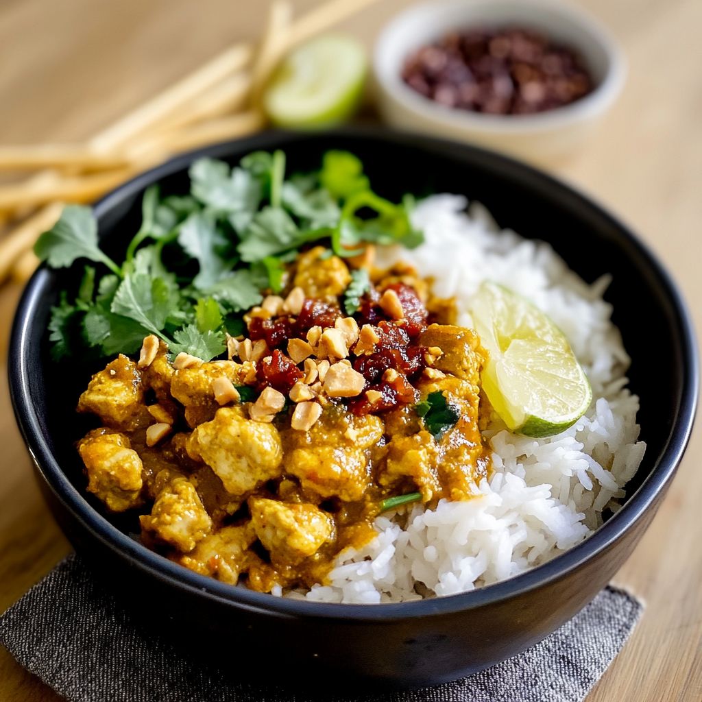 Sear the chicken in a hot pan first to lock in juices, then prepare the peanut sauce while it cooks for optimal flavor integration.