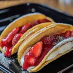 Strawberry Cheesecake Dessert Tacos are a whimsical twist on a classic dessert, enveloping creamy cheesecake filling and fresh strawberries in a crunchy taco shell. This fun and vibrant treat is perfect for summer gatherings or cozy nights in, guaranteed to delight your taste buds with every bite!