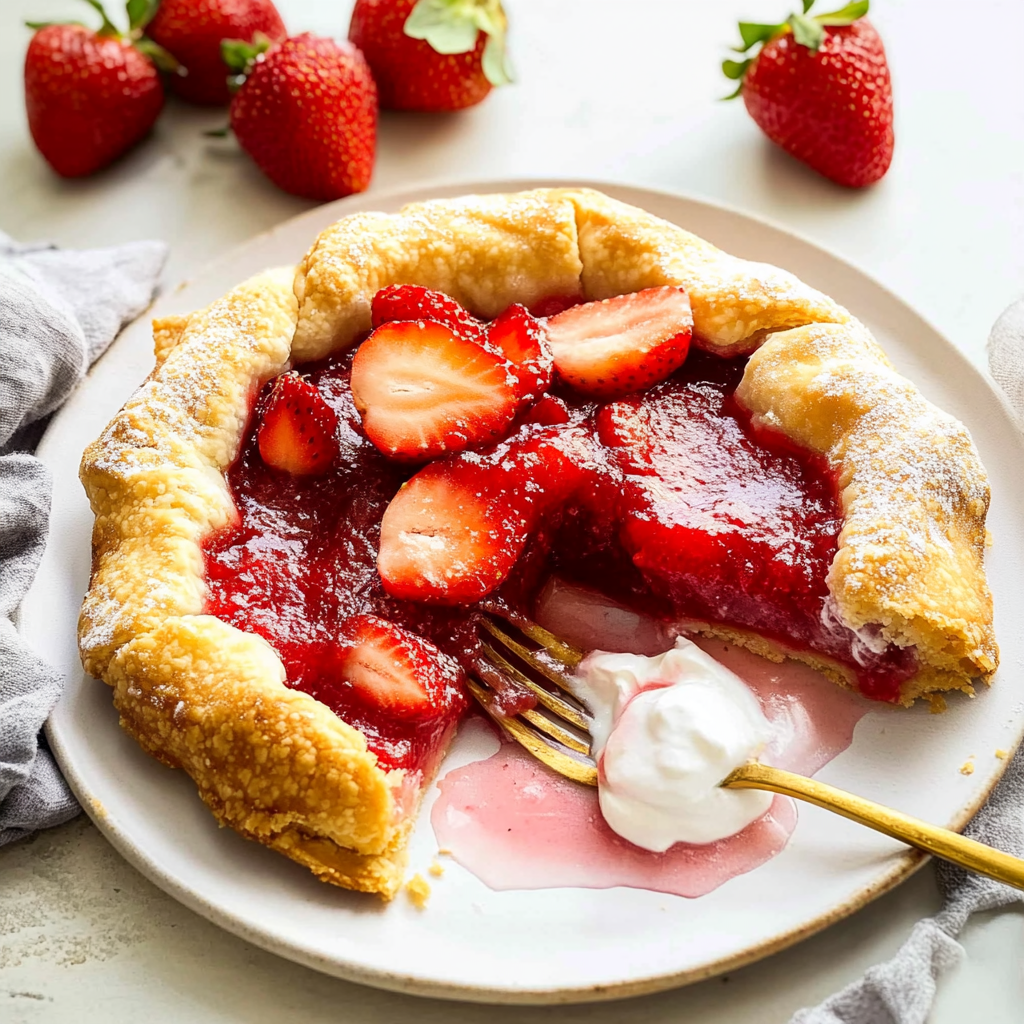 Indulge in the delightful taste of a homemade strawberry galette, where sweet, juicy strawberries meet a buttery, flaky crust. This rustic dessert captures the essence of summer in every bite, making it perfect for picnics, brunches, or simply treating yourself. With minimal ingredients and easy preparation steps, you’ll impress family and friends with this charming dish that’s sure to become a favorite.