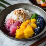 Start by soaking the sticky rice overnight for perfect texture. Steam it while warming your coconut milk mixture. Combine them gently for a delightful blend of flavors.