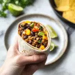 Assemble Your Burrito: Lay one tortilla flat and scoop in generous portions of the bean-vegetable mixture. Add sliced avocado and a squeeze of lime juice—don’t forget some cilantro if you’re feeling fancy.