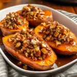 Maple Walnut Sweet Potatoes offer numerous health benefits. Sweet potatoes are high in fiber, vitamins A and C, and antioxidants. They contribute to better digestion, improved immunity, and healthy skin. Walnuts add healthy fats and omega-3 fatty acids, which support heart health and brain function. Additionally, using maple syrup as a natural sweetener provides minerals like manganese and zinc. Together, these ingredients create a nutritious dish that can fit into various diets.
