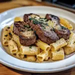 Garlic butter steak with cheesy rigatoni is a show-stopping dish that combines tender ribeye steak seared to perfection and creamy, cheesy pasta. The rich garlic butter sauce adds depth and flavor, making it an unforgettable meal for any occasion. Whether it’s a cozy family dinner or a special date night, this recipe will leave everyone asking for seconds.