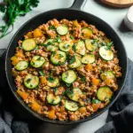 In summary, the Ground Turkey and Zucchini Skillet is a delicious and healthy choice perfect for any weeknight dinner. This dish combines lean protein with fresh vegetables, providing essential nutrients without excess calories. Its versatility allows you to customize flavors according to your preferences, ensuring satisfaction every time you prepare it. Remember to store leftovers properly for future meals, making this skillet not just tasty but also convenient!