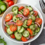 The zesty crunch and vibrant colors of a Cucumber Tomato Salad are like a party on your plate. Imagine biting into fresh, crispy cucumbers and sweet, juicy tomatoes that dance together in a light, tangy dressing. It’s the kind of dish that makes you feel like summer is in full swing, even if you’re just sitting at your kitchen table with a fan blowing on you. For more inspiration, check out this dinner recipes recipe.