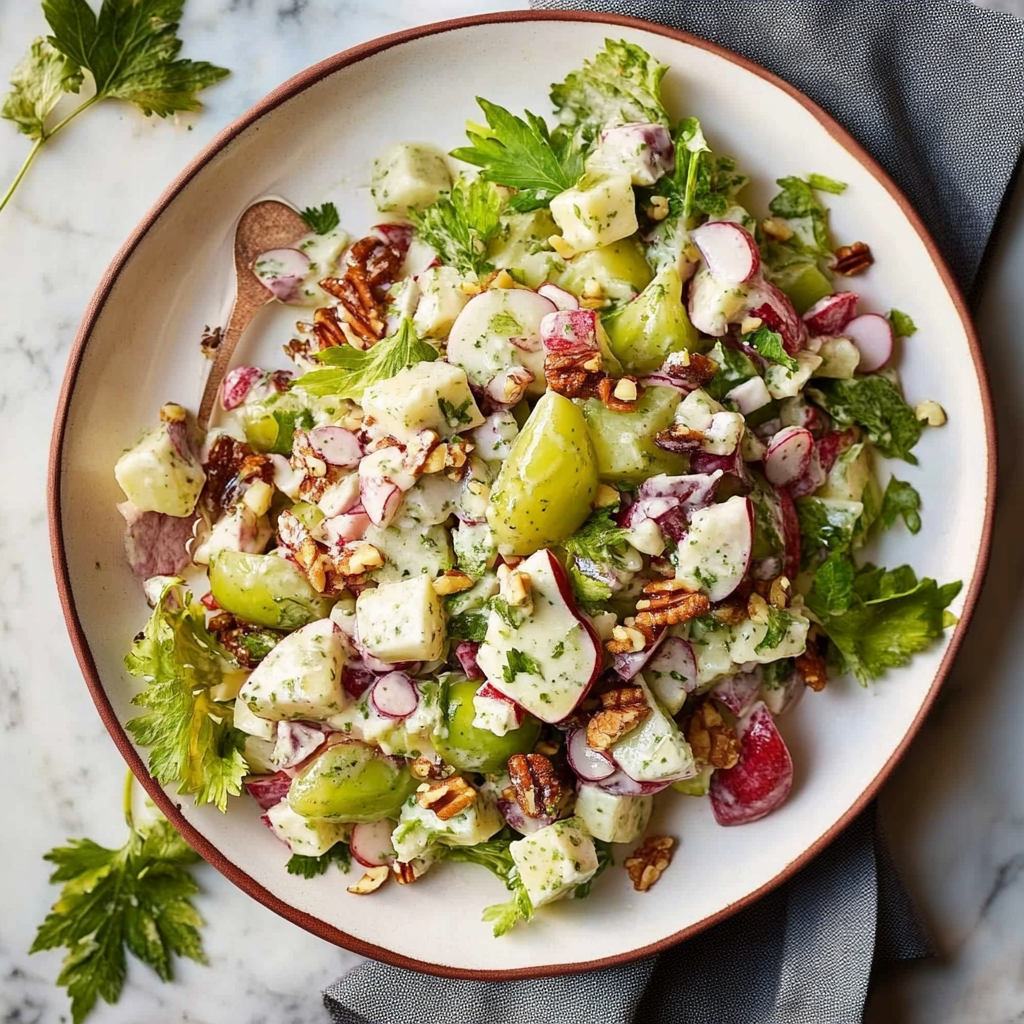 Keywords: - For added sweetness, consider incorporating dried cranberries. - Swap walnuts for pecans if desired for a different flavor profile. - To keep apples from browning, add lemon juice immediately after dicing.