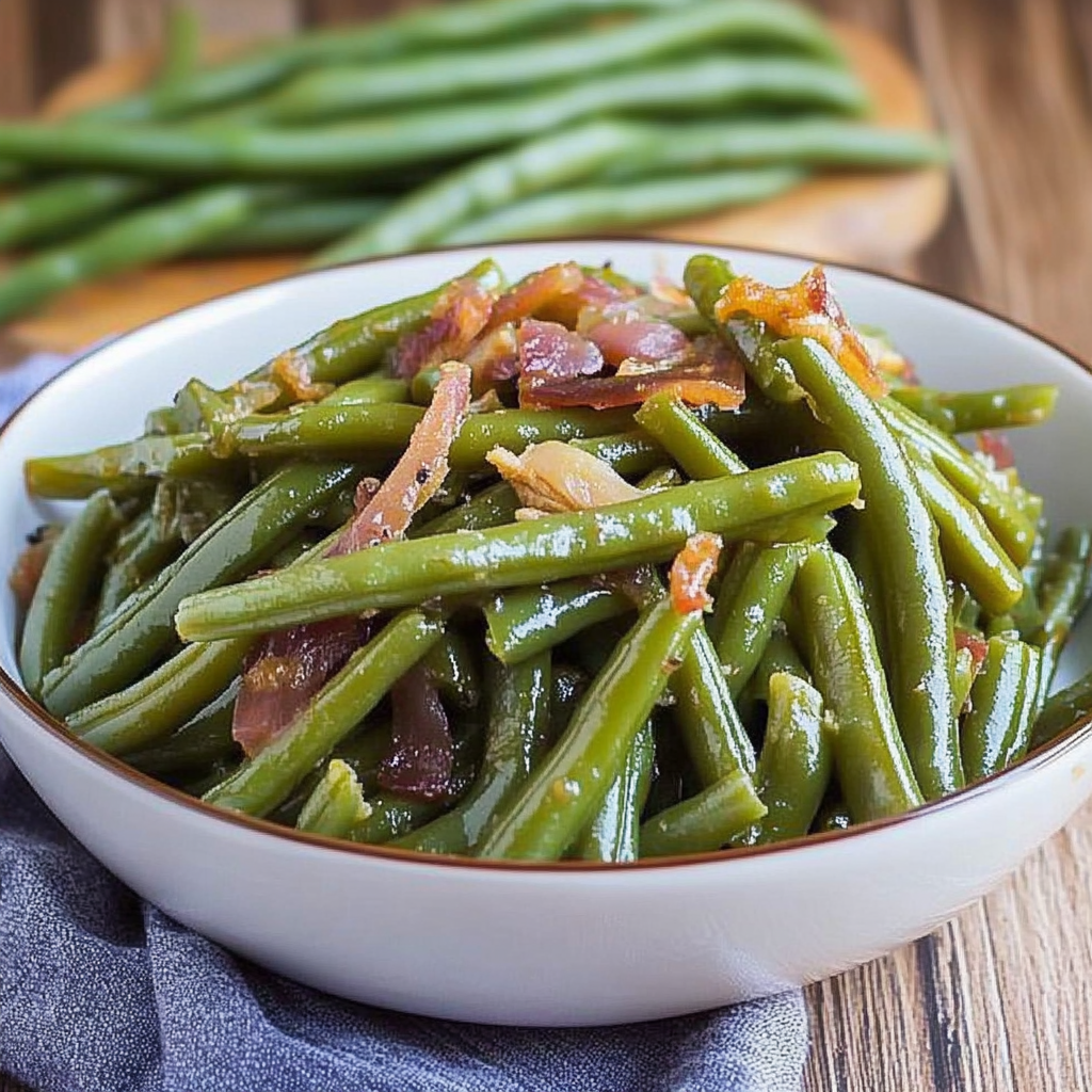 These Southern green beans are a delightful blend of tender, vibrant beans sautéed with garlic, onion, and butter for a rich, savory flavor. Perfect for family gatherings or weeknight dinners, this recipe captures the essence of Southern hospitality in every bite. With their bright color and buttery goodness, these green beans will steal the show on your dinner table.