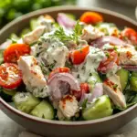 Enjoy a refreshing Tzatziki Chicken Salad bursting with Mediterranean flavors, featuring grilled chicken, creamy tzatziki, and vibrant vegetables—perfect for summer gatherings or healthy lunches.