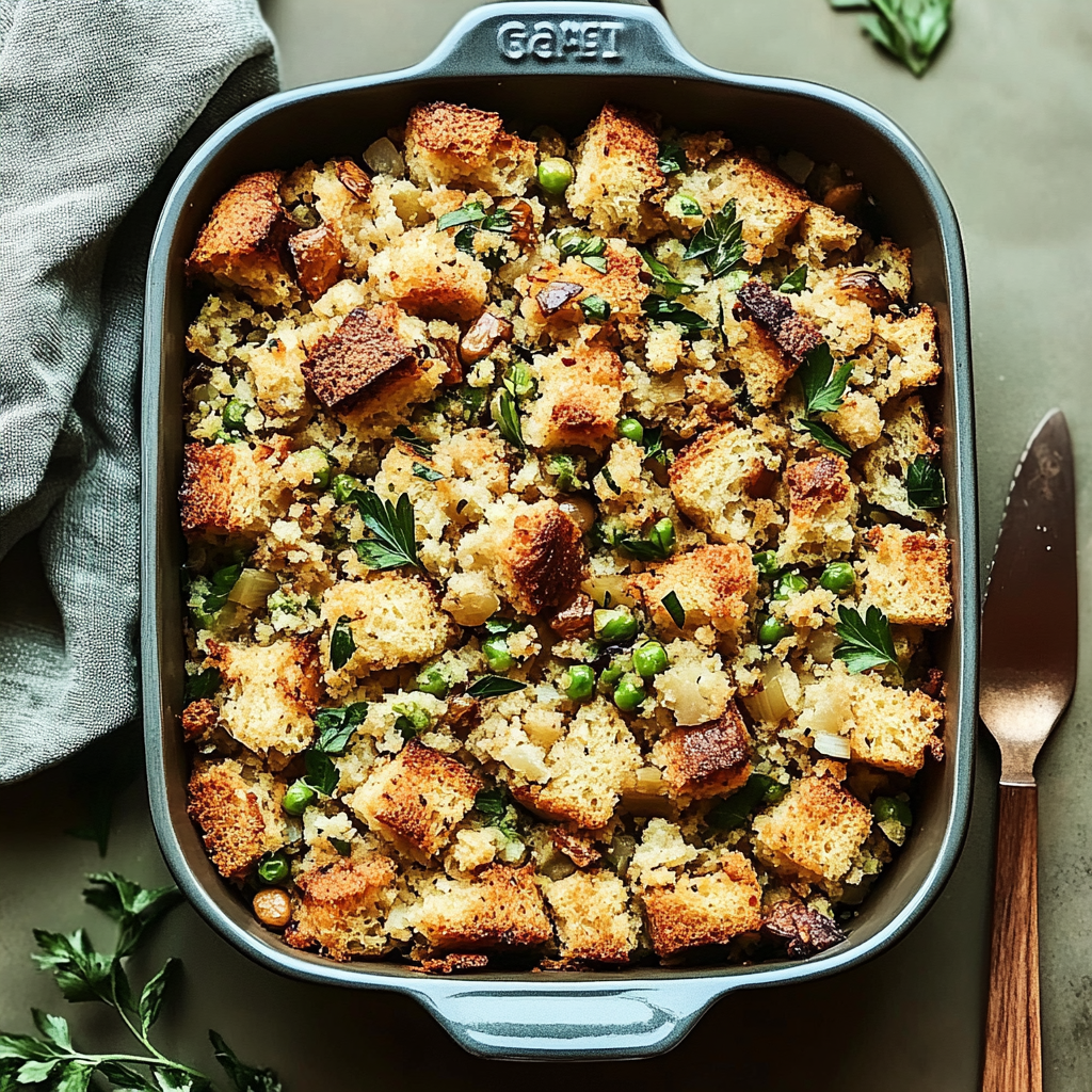 Cornbread stuffing is a beloved comfort food that brings warmth and joy to any gathering. With its buttery cornbread base, fragrant herbs, and a hint of sage, this dish is perfect for holiday celebrations or cozy family dinners. The crispy edges and soft interior create an irresistible texture that everyone will love. Bring a taste of tradition to your table with this easy-to-make recipe that’s sure to become a favorite in your home.
